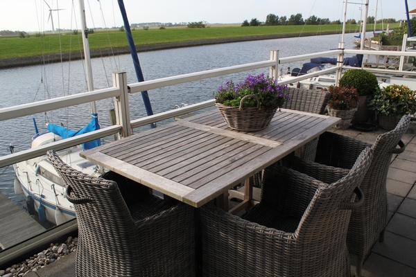 Het tweede terras geeft de mogelijkheid, om zowel in als uit de zon te kunnen zitten. Op de luxe lounge-set geniet u van de omgeving.