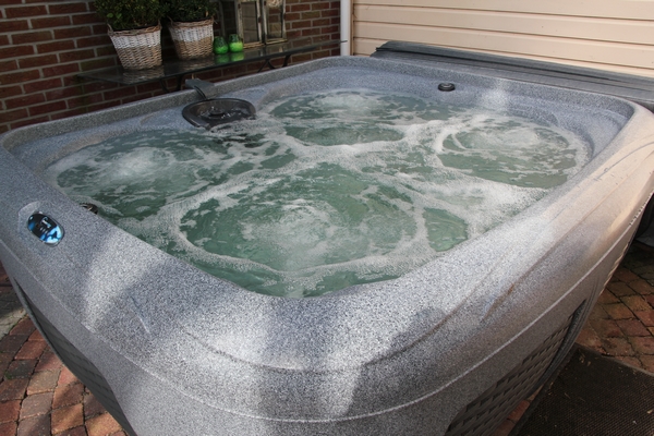 De jacuzzi staat op de afgesloten patio. Vanuit de jacuzzi kijkt u uit over het water en ‘s avonds kunt u genieten van de prachtige sterrenhemel.